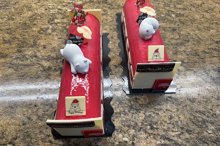 The buche’s decoration is changing every year. the pictures provide you an idea of what they will look like (it was 2020). Go on instagram to check for 2025 !